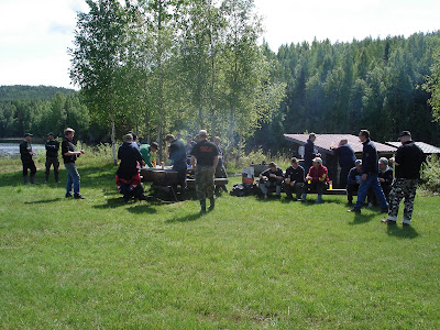 Goda hamburgare och en trevlig stund tillsammans bjöds vi på efter en välbehövlig paus mitt i tävlingen. Som tur så sken solen då!